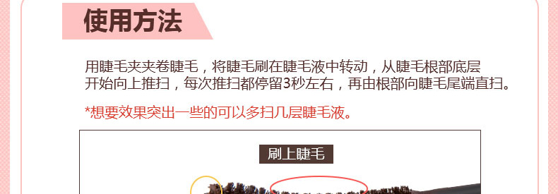 1、天然成分,呵護睫毛。 2、零重感纖維,打造卷翹。3、防水防汗不暈妝。 |