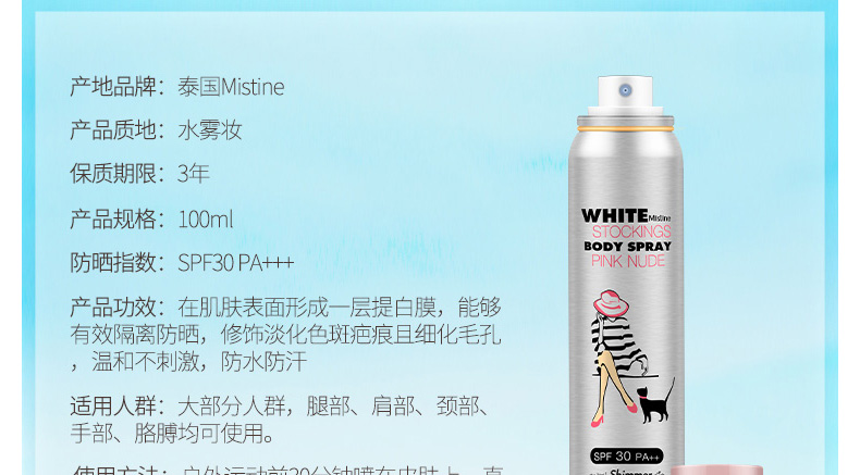 泰國Mistine隱形絲襪防曬噴霧美白防曬美腿遮瑕 100ml/瓶 |