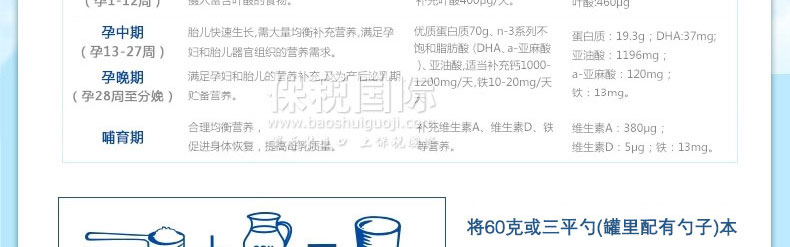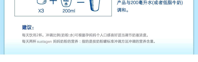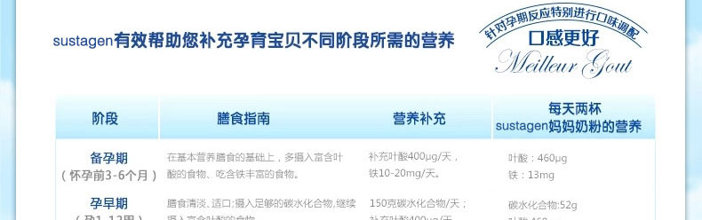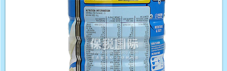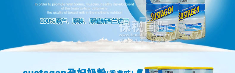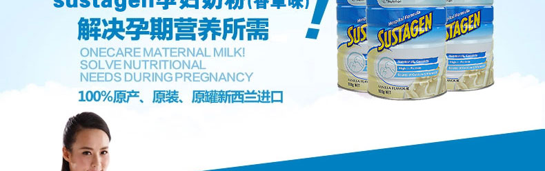 澳洲原產 NESTLE/雀巢 Sustagen孕婦奶粉原味 900g—— 1.Sustagen專業(yè)全營養(yǎng)奶粉,在新西蘭為醫(yī)療專用奶粉,主要使用對象為術后病人、營養(yǎng)不良的孕婦等,只在藥店銷售。 2.懷孕期間是女人一生之中營養(yǎng)需求量最大的時期孕婦們的營養(yǎng)需求遠遠超過了其他人群. 3.Sustagen這款奶粉給媽咪們提供受精前的身體調理 懷孕期間和母乳喂養(yǎng)期間的全面營養(yǎng)供給.保持健康飲食的同時,Sustagen作為一種營養(yǎng)補充食品可以滿足媽咪們在懷孕和產后恢復中的營養(yǎng)需求。 4.每份Sustagen Hospital Formula含有人體必需的氨基酸,27種維他命,礦物質以及大量營養(yǎng)元素。含菊粉纖維及大豆纖維以幫助健康的消化和腸道吸收能力。 |