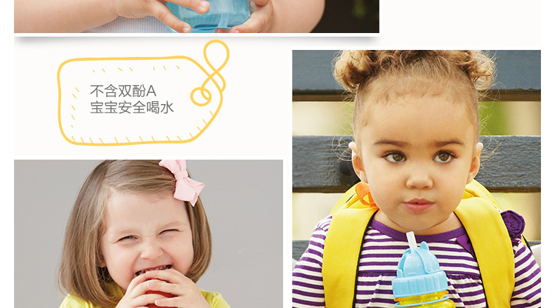 1、密封性強,滴水不漏,安全放行。 2、容量大,滿足寶寶喝水需求。 3、附帶魔術手腕帶,方便便捷。 |