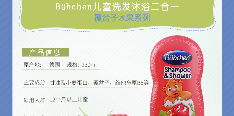 奧地利 寶比珊 Bubchen 兒童洗發沐浴二合一 覆盆子水果系列 230ml |