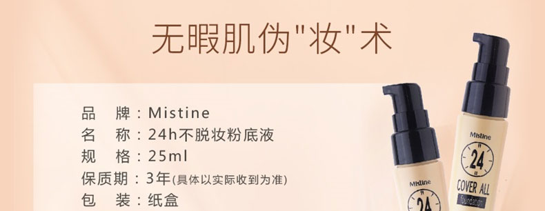 泰國Mistine原裝24小時不脫妝粉底液遮瑕隔離防水防護F2自然色25ml |