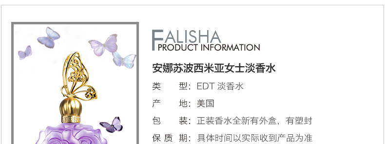 美國(guó)安娜蘇 Anna Sui 波希米亞紫蝶戀女士淡香水 75ml |