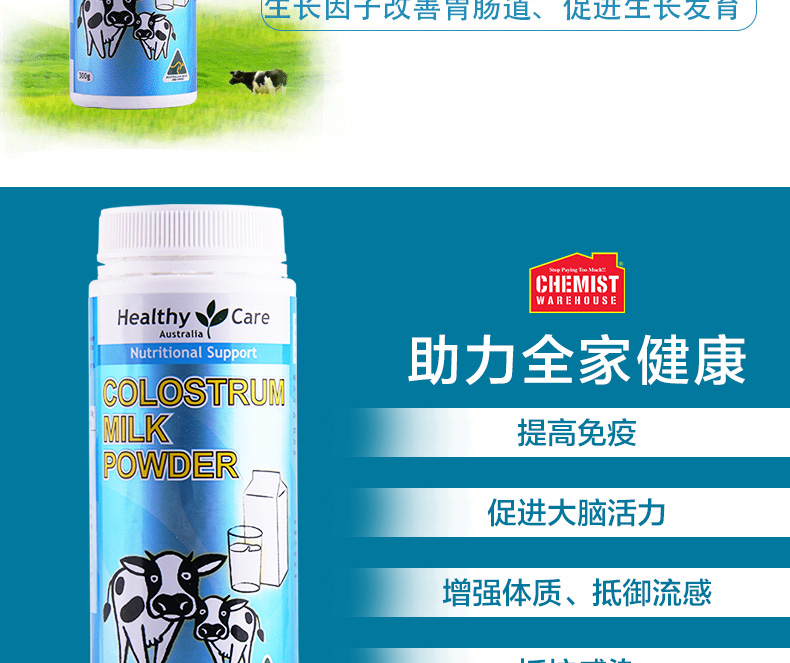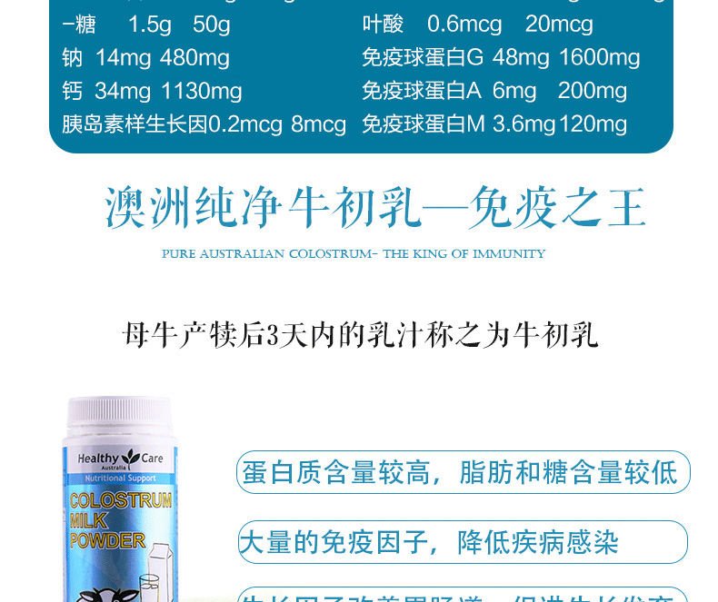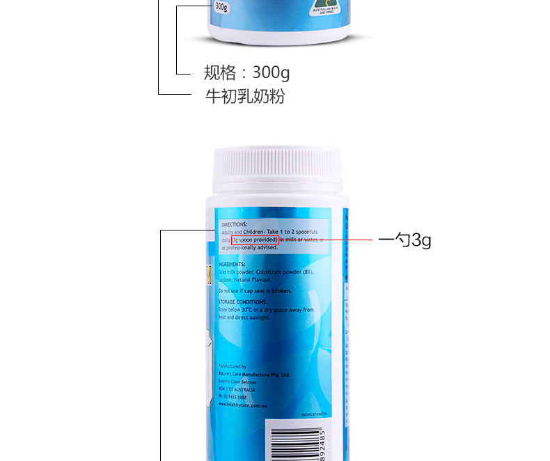 澳洲Healthy Care 牛初乳粉成人全脂奶粉300g |