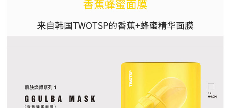 韓國(guó)TWOTSP香蕉蜂蜜保濕補(bǔ)水面膜(XS臉小專用)30ml |