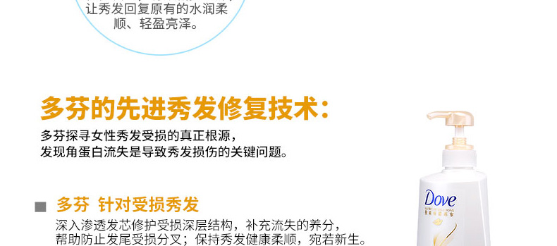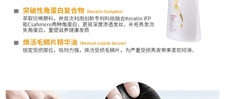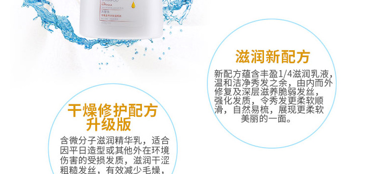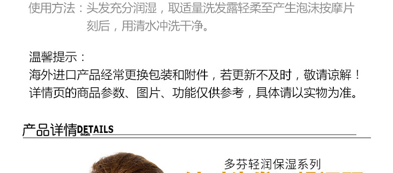 1.滋潤秀發,撫平毛躁干澀。 2.深入滲透滋養發芯、持續補充流失的養份。 3.含輕盈高效保濕精油,撫平毛燥,還你健康秀發。 |