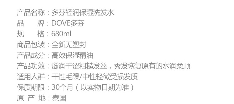港版多芬(Dove) 輕潤保濕洗發水 680ml/瓶 |