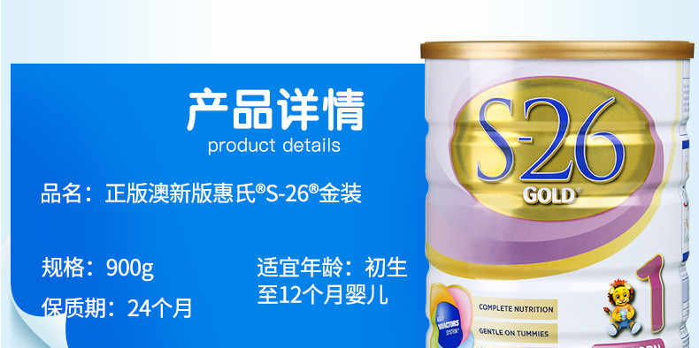 新西蘭惠氏Wyeth S-26金裝嬰幼兒配方奶粉1段900克/罐 |