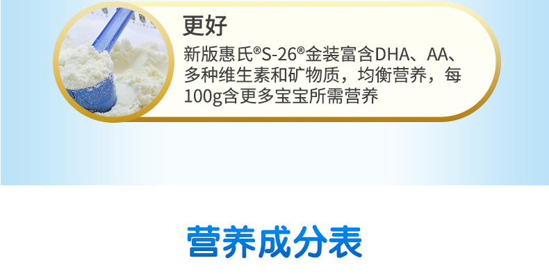 1.科學均衡營養配方,支持寶寶眼腦發育及體格生長。 2.口味清淡,不含蔗糖,特別添加葉黃素,幫助寶寶眼睛發育。 3.惠氏S-26,含營養科技:神經鞘磷脂。神經鞘磷脂有助于神經元網絡化。 注:奶粉包裝更新換代頻繁,請以收到實物為準。 |
