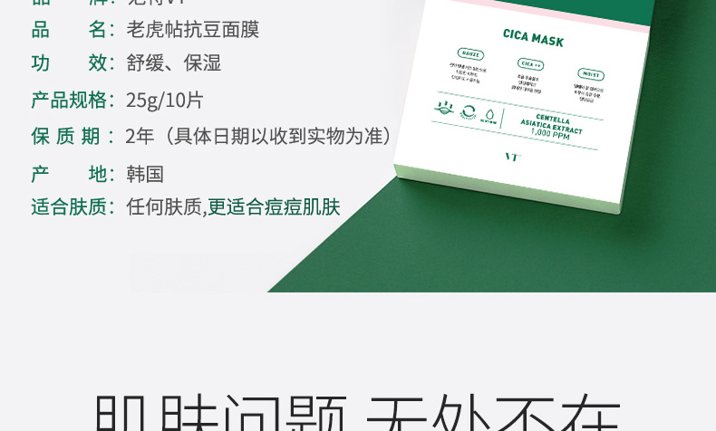 韓國VT/范特 老虎貼抗痘面膜 CICA溫和控油淡化痘印 10片/盒 |