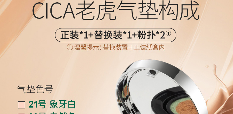 韓國 VT/范特 CICA老虎氣墊積雪草遮瑕持久服帖粉底膏 含替換裝 23#自然色 |