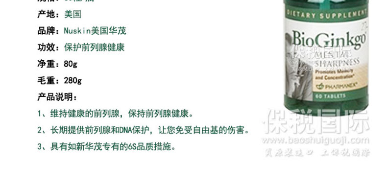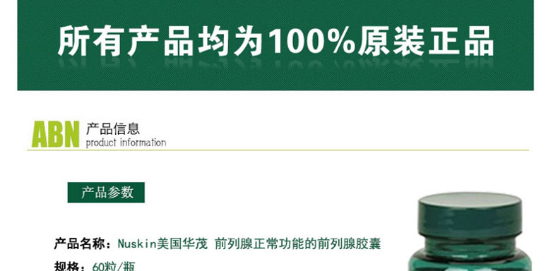 ![]() | 商品名稱 | Nuskin美國華茂 保證前列腺正常功能的前列腺膠囊 60粒/瓶 | |||