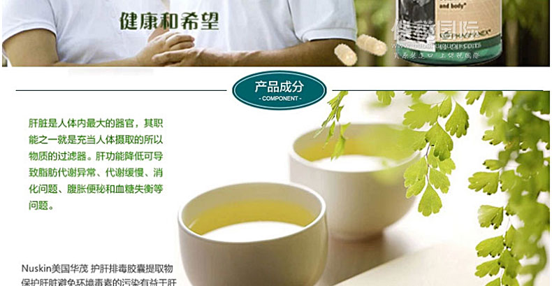 | 產品說明 | Nuskin美國華茂 護肝排毒膠囊 自行修復 生長健康肝細胞? 60粒/瓶 正品直郵—— 1.此產品可以提高肝膽功能,促進新陳代謝,排除毒素,提供胺基酸,修復肝細胞,減輕肝負擔; 2.添加的抗氧化劑可保持肝臟細胞健康,刺激肝細胞正常發育。 3.如新華茂專有的6S品質措施, 能夠確保安全性和有效性。 | ||||