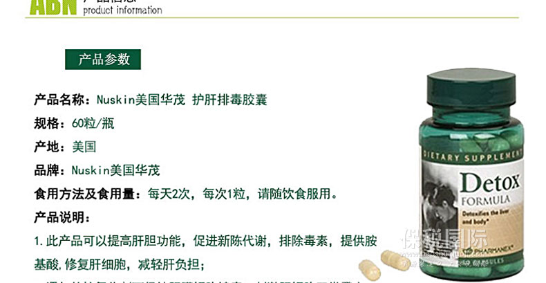 ![]() | 商品名稱 | Nuskin美國華茂 護肝排毒膠囊 自行修復 生長健康肝細胞? 60粒/瓶 正品直郵 | |||