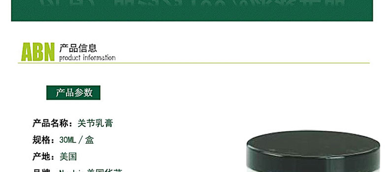 ![]() | 商品名稱 | Nuskin美國華茂 關節乳膏 獨特的專利配方 采用尖端科技 快速緩解關節疼痛(30ML∕瓶) | |||