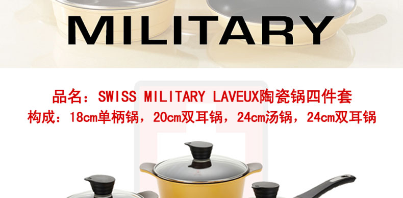 商品名稱 | SWISS MILITARY LAVEUX 韓國原裝進口鋁制材質 陶瓷涂層 現代化淡雅 陶瓷鍋 4件套 | ||