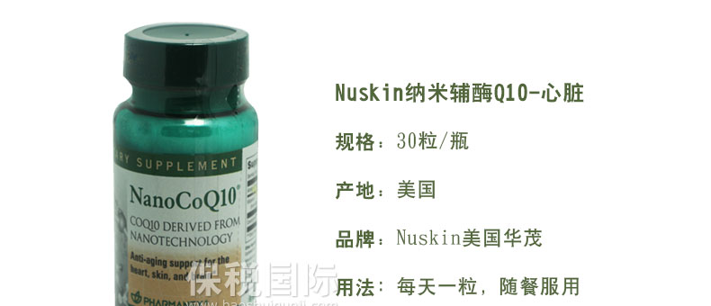 ![]() | 商品名稱 | Nuskin美國華茂納米輔酶Q10-心臟 皮膚 頭發 保護膠囊30粒/瓶 | ||