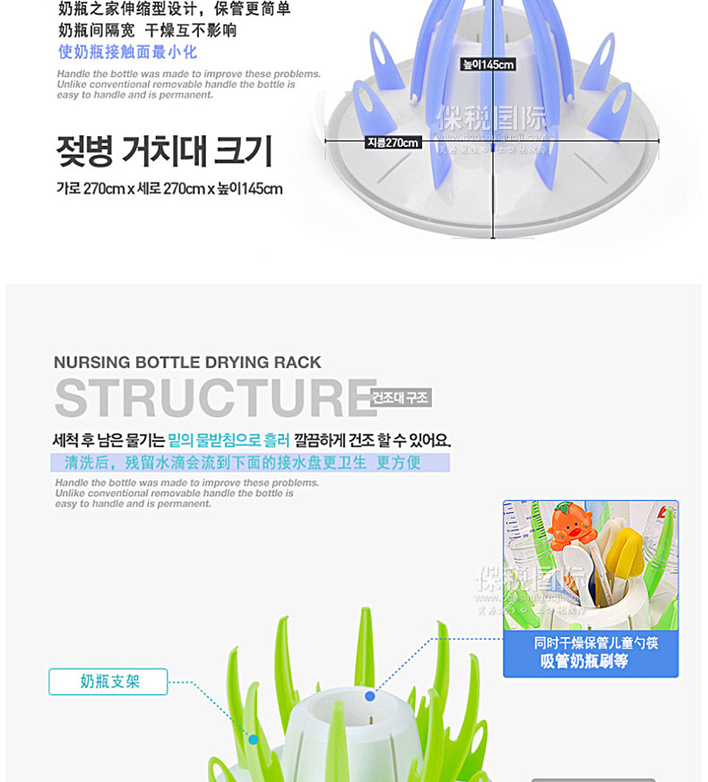 商品名稱(chēng) | 韓國(guó)M'etonne花式嬰兒用品奶瓶晾干架/整理架/晾曬架/收納架(藍(lán)色) | ||