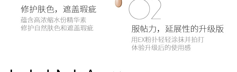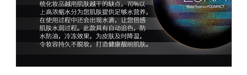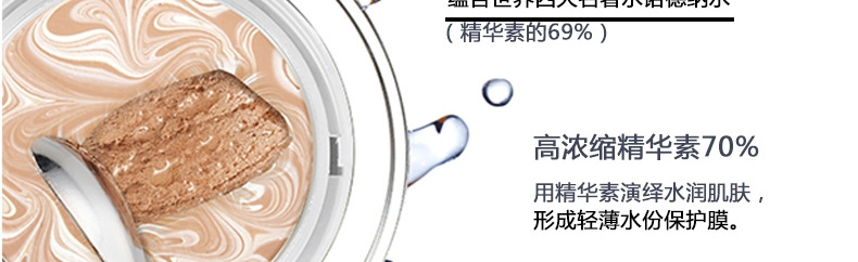 1.妝感服帖,有效遮瑕。 2.注入多種養膚精華,讓你上臉自帶光澤。 3.上妝清透自然,白皙水潤,整天不脫妝。 |