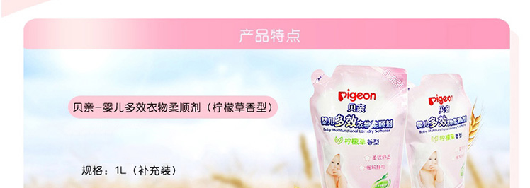 日本 Pigeon/貝親嬰兒多效柔順劑(檸檬草香)1L補充裝 |