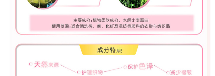 采用天然植物成分,帶有淡淡的植物清香;中性配方,無磷型,無熒光增白,不添加酒精、色素,溫和配方。 |