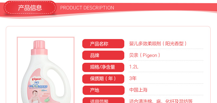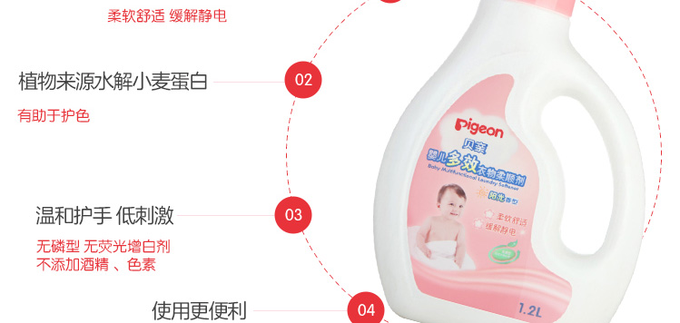 日本 Pigeon/貝親嬰兒多效柔順劑(陽光香型)1.2L |
