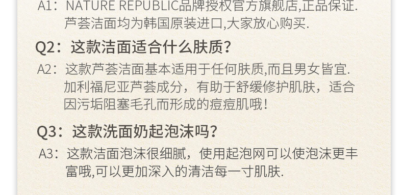 韓國納益其爾蘆薈舒緩泡沫潔面乳 150ml |