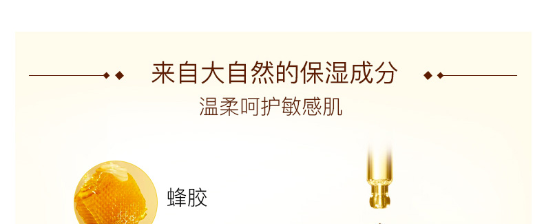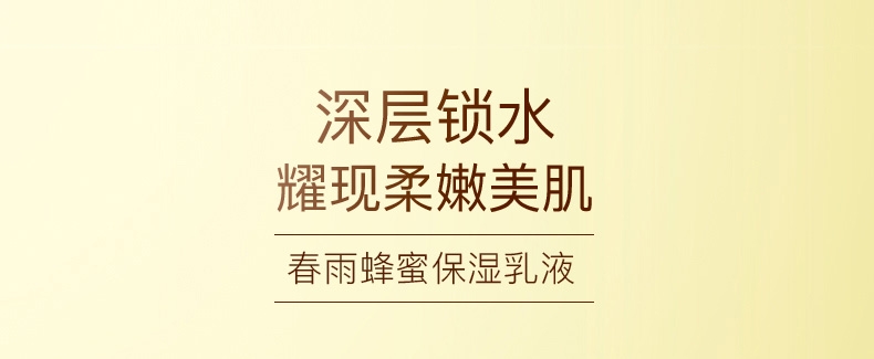 1、富含蜂膠及蜂蜜精粹,及蘆薈、白頭翁等植物提取物。 2、補水保濕,易吸收,清爽不黏膩。 3、搭配春雨蜂蜜爽膚水使用,效果更佳。 |
