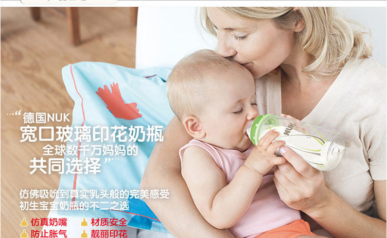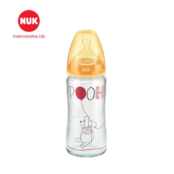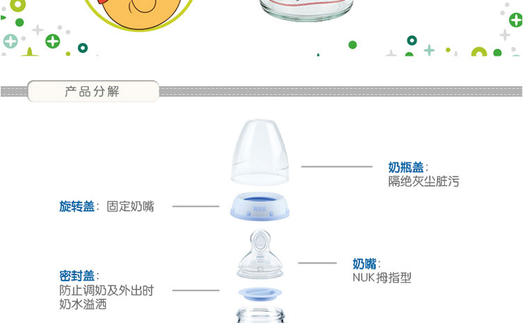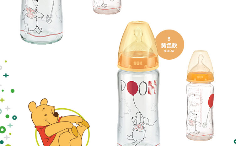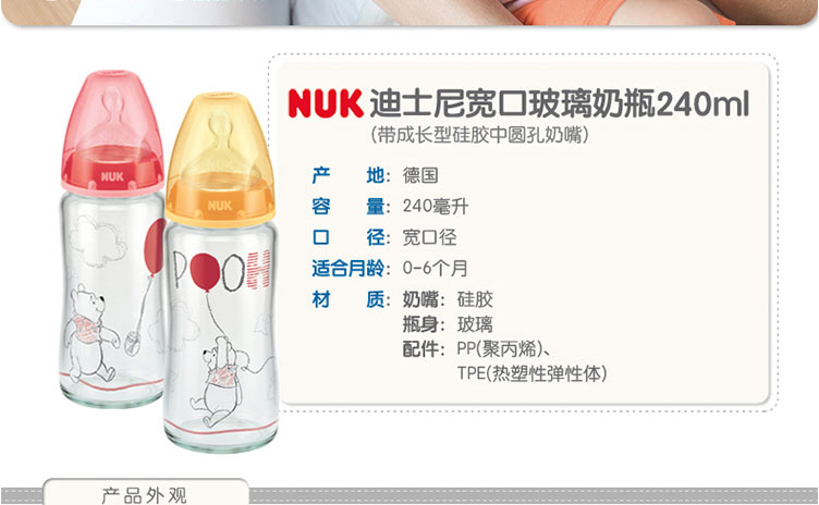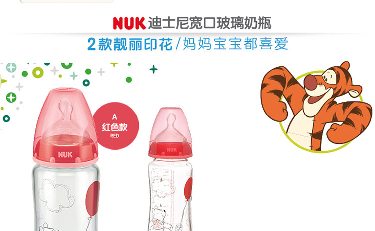 德國NUK迪士尼寬口耐高溫玻璃彩色奶瓶240ml(帶1號硅膠寬口仿真通氣奶嘴) |