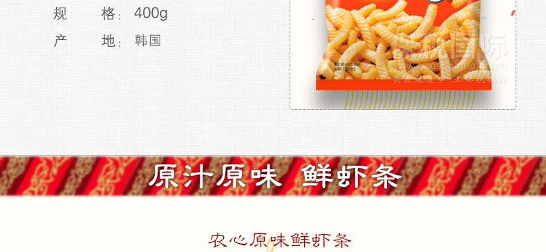 韓國(guó)進(jìn)口零食 農(nóng)心鮮蝦條 原味 休閑零食 400g |