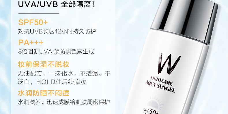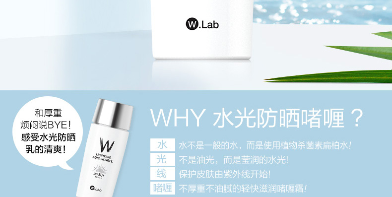 韓國W.lab水光防曬啫哩霜 50ml 不油膩不假白 輕薄防紫外線SPF50 |