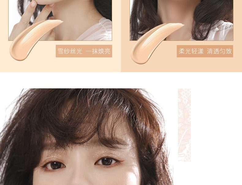1.遮蓋毛孔、瑕疵、黑眼圈。 2.含有奢華保濕成分,美膚兼奢養,柔滑沁潤。 3.細粉粒分散技術,粉質細膩,無暇更持久。 4.清透控油,多孔性吸附皮脂,拒絕油膩感,不悶不厚重。 |