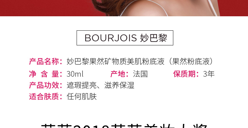 BOURJOIS/妙巴黎 果然礦物美肌粉底液30ml |