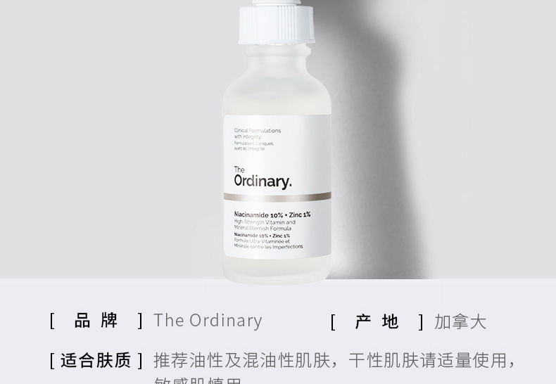 【香港直郵】加拿大The Ordinary 10%煙酰胺+1%鋅 維他命精華30ml |