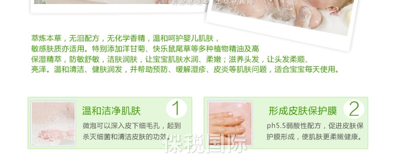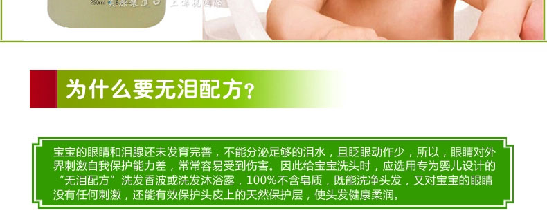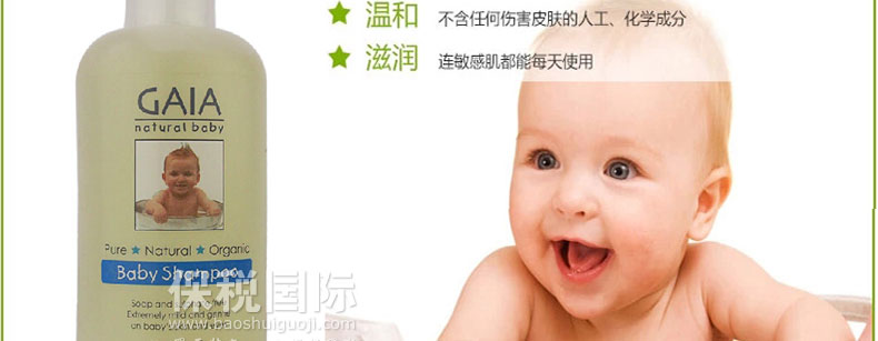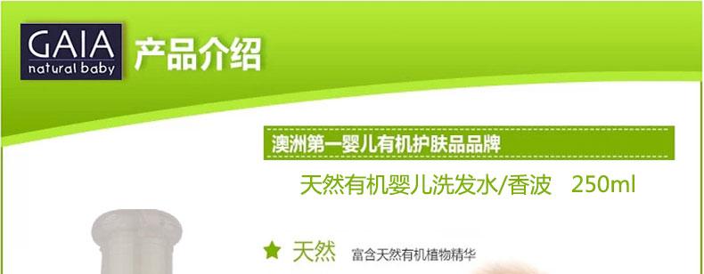 澳大利亞 GAIA 天然有機(jī)嬰兒洗發(fā)水/香波 無淚配方 250ml —— 采用全天然有機(jī)配方的GAIA寶寶有機(jī)洗發(fā)水。它特別添加保濕及潤發(fā)成份,含豐富洋甘菊精華,讓寶寶頭發(fā)柔軟有光澤。 配方堅持不含皂質(zhì)、合成香精及SLS/SLES界面活性劑,能溫和清潔頭發(fā)及頭皮,中性PH,以及為嬰幼兒特殊設(shè)計的低泡沫配方可幫助寶寶減少奶痂,保持頭皮濕潤,避免蛻皮.讓寶寶頭發(fā)柔軟閃出自然光滑。本品不僅適用于嬰兒和兒童,也適合全家使用。 |