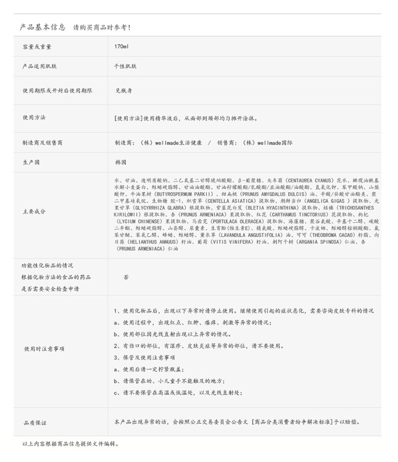 | 保質期限 | 3年 | 產品產地 | 韓國 | |