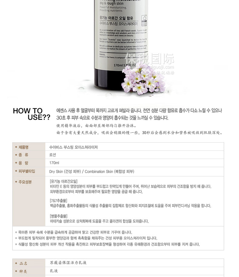商品名稱 | 韓國SUAVISS/蘇薇姿保濕活力乳液 170ml | ||