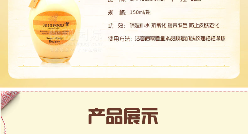 韓國(guó) Skinfood思親膚 蜂蜜活顏保濕乳液 富含皇家蜂蜜 持久保濕滋潤(rùn)150ml/瓶 |