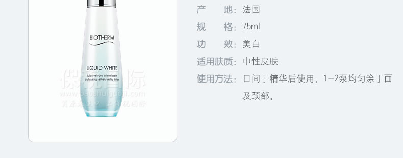 法國 Biotherm碧歐泉 LIQUID WHITE 水瀅光感美白乳液 水潤柔嫩 亮白保濕 (75ml) |