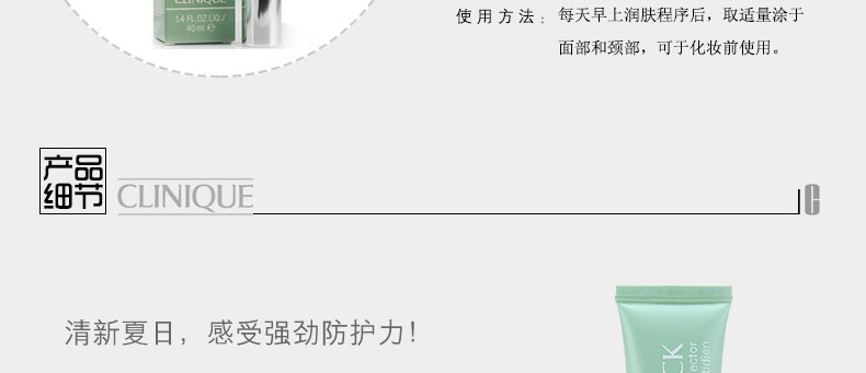 | 品 牌 | ?? Clinique/倩碧 | ? 類 型 | 防曬霜 | |