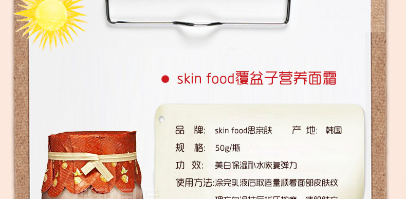 韓國 思親膚 Skin food 覆盆子營養(yǎng)面霜 保濕美白營養(yǎng)霜 |