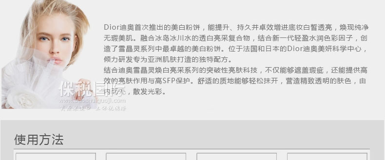 NOW迪奧雪晶靈粉餅 夏季適用 持久妝效(8.5g)—— 1.營造閃耀亮澤的無暇妝容,堅持使用可以令肌膚晶瑩無暇。 2.提升膚質、持久妝效、美白底妝產品,含極細顆粒提供健康、透亮、啞光妝效。 |