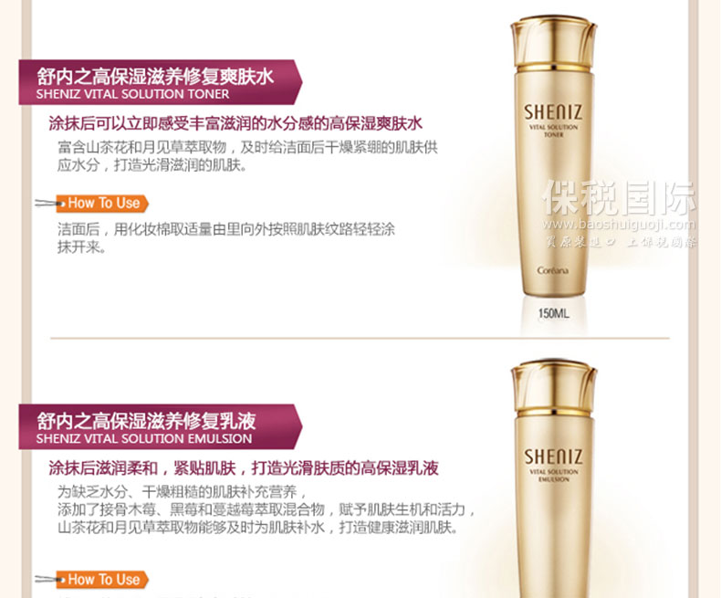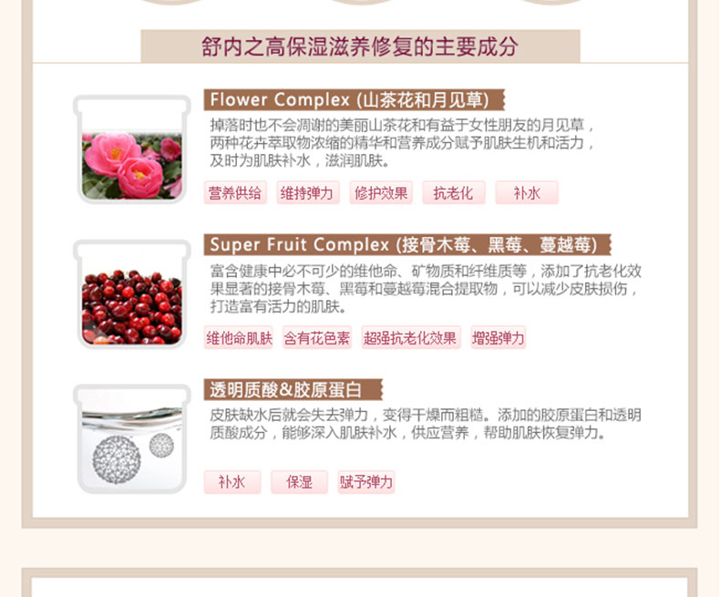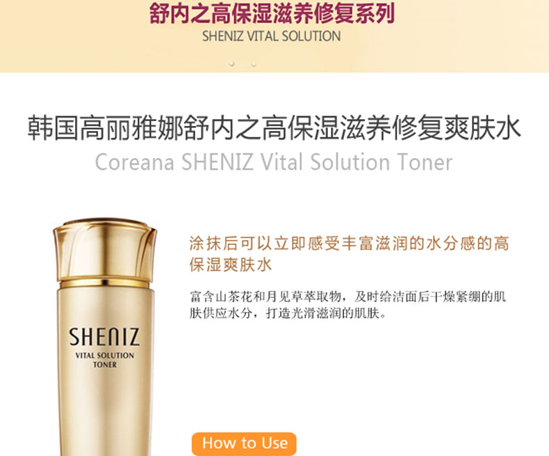 韓國高麗雅娜舒內之高保濕滋養修復爽膚水 150ml 補水 保濕—— 1 采用水潤提拉技術來提高水分和彈力 2 富含山茶花和月見草萃取物,及時給潔面后干燥緊繃的肌膚供應水分 用 法:潔面后,用化妝棉取適量由里向外按照肌膚紋路輕輕涂抹開來。 注:敏感肌膚慎用,可隱蔽處進行皮膚測試后使用。 |