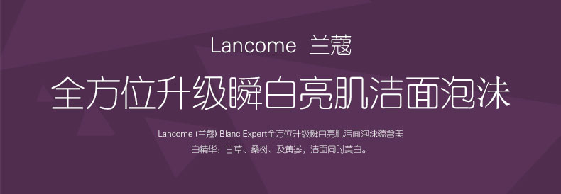 蘭蔻BLANC EXPERT全方位升級瞬白亮肌潔面泡沬 去角質 清潔保濕控油進口洗面奶 (125ml)—— 1 有效徹底潔凈面上汗水油脂塵埃及化妝品性質溫和不會對肌膚造成負擔 2 對面部油脂較多的人而言質感水盈清爽能軟化及保濕肌膚提升肌膚彈性 3 令肌膚變得更柔軟細滑適合早晚使用給你一天完美的開始 |