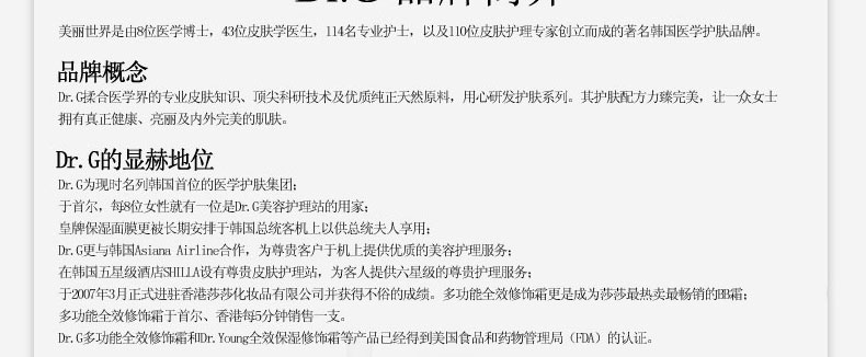 - 品牌:韓國 DR.G/美麗世界