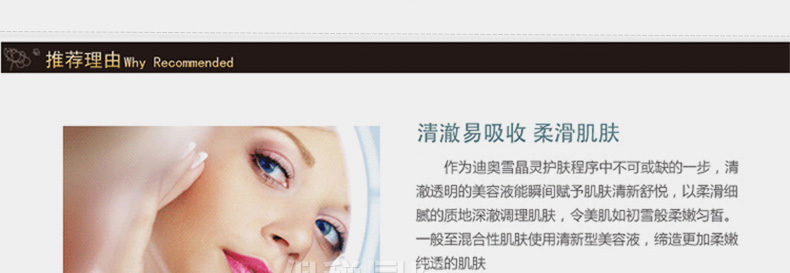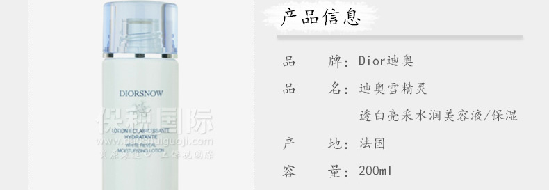 法國 DIOR SNOW迪奧雪晶靈 雪凝亮白清爽化妝水 美白滋潤皮膚 干性及脆弱性皮膚(200ml)—— 1.用后肌膚得到深層潤澤,膚質(zhì)柔軟,為肌膚注入源源的水份。 2.Icelandic Glacial Water冰島冰川水:幫助凈化及重新平衡膚質(zhì)。Diorsnow成份:雪凝亮白。 3.全天候水潤到底,令你的肌膚仿如重生一樣。 注:敏感肌膚慎用,可隱蔽處進(jìn)行皮膚測試后使用。 |