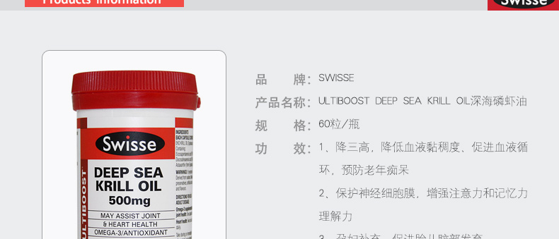 SWISSE ULTIBOOST DEEP SEA KRILL OIL深海磷蝦油 60粒/瓶 護心補腦 |