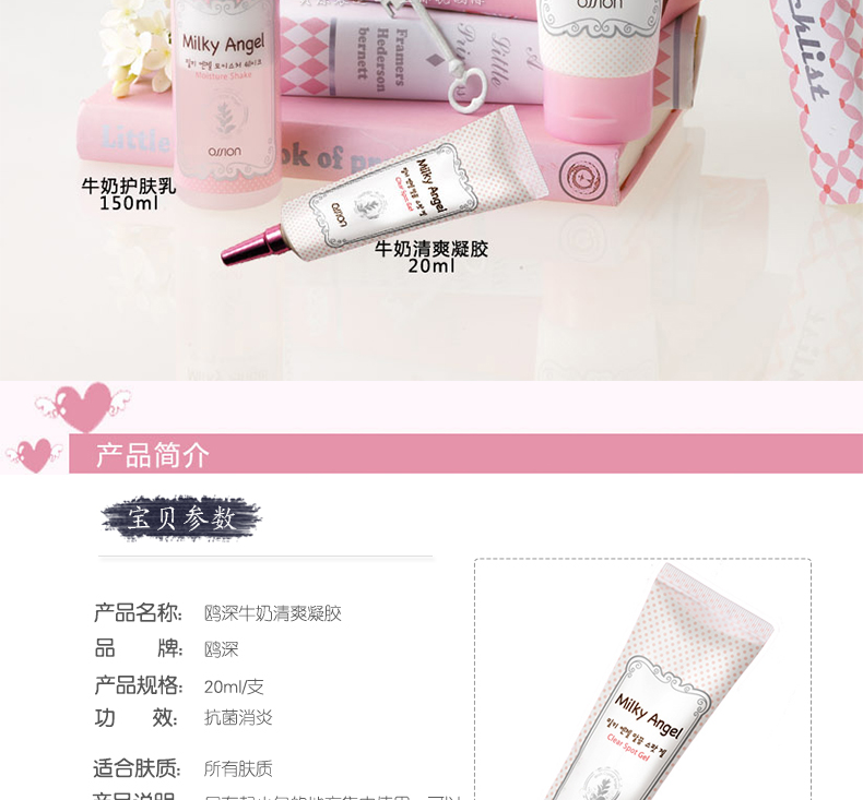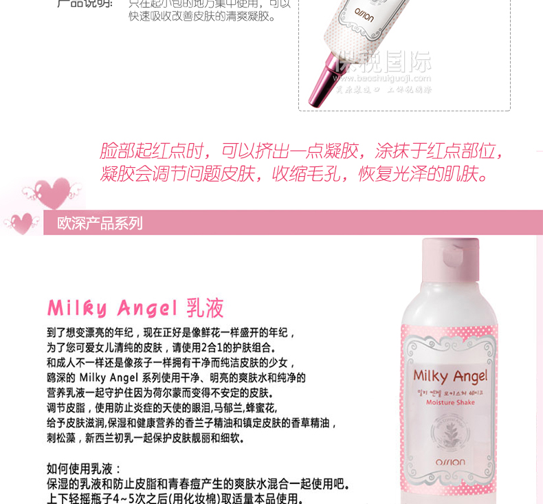 韓國 OSSION鷗深 少女系列牛奶清爽凝膠 收縮毛孔 消除紅點(20ml/支) |