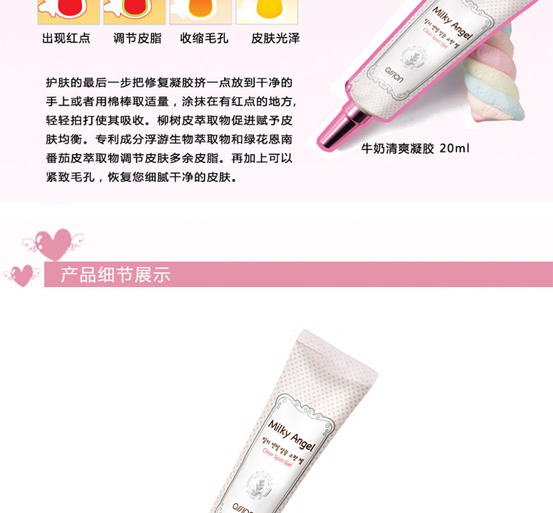韓國 OSSION鷗深 少女系列牛奶清爽凝膠 收縮毛孔 消除紅點(20ml/支)—— 1.只在起小包的地方集中使用,可以快速吸收改善皮膚的清爽凝膠。 2.專利成分浮游生物萃取物和綠花恩南番茄皮萃取物調節皮膚多余皮脂。 3.可以緊致毛孔,恢復細膩干凈的皮膚。 |