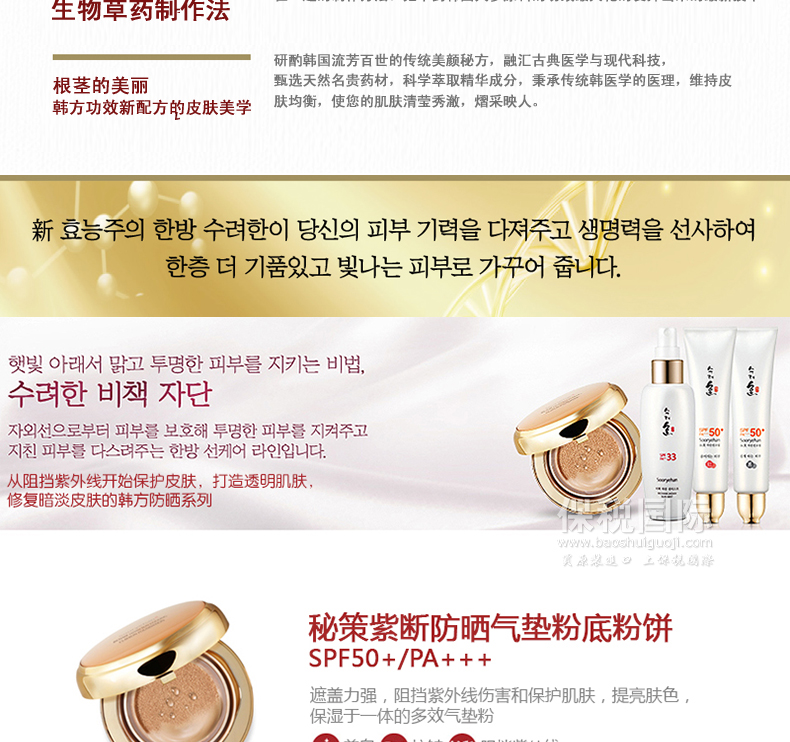 | 產品說明 | 韓國 秀麗韓 秘策紫斷防曬氣墊粉底粉餅 防曬防紫外線(買一就送同款替換裝)—— 1.遮蓋力強,阻擋紫外線傷害和保護肌膚,提亮膚色,保濕于一體的多效氣墊粉。 2.SPF50+/PA+++超高阻擋紫外線倍數。 3.超強的貼合力持久自然。 | |||